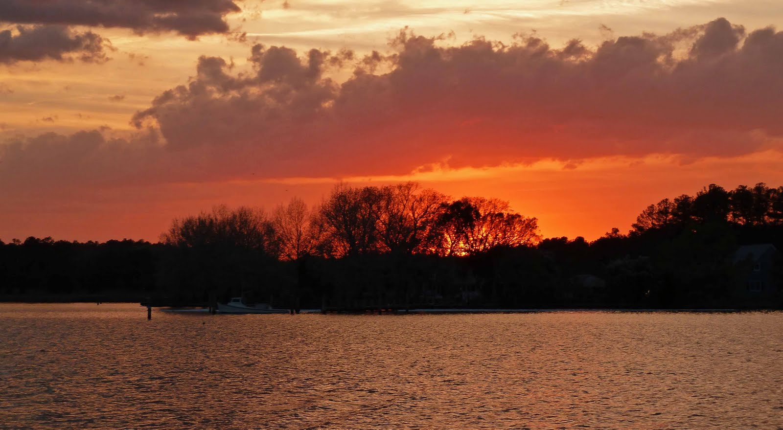 Many anchorages provide long views which gives nature the opportunity to paint the sky with color and light. A few photos may help illustrate the benefits of being on the hook.